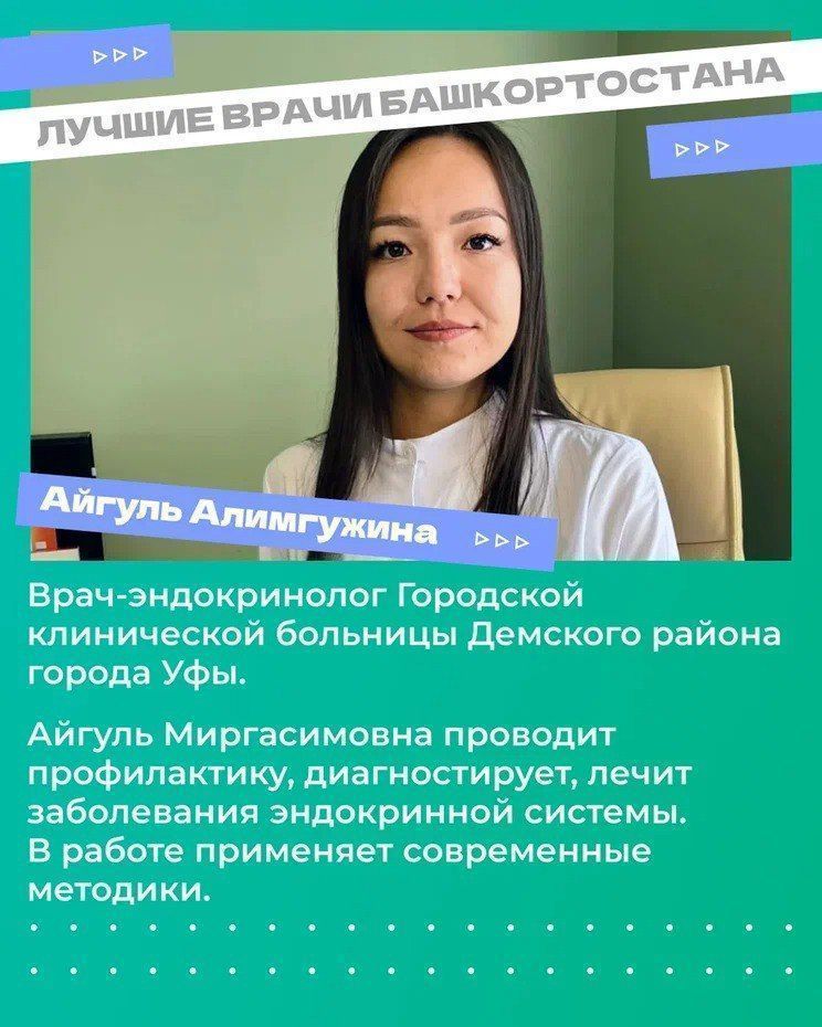 Сегодня Айгуль Алимгужина работает врачом-эндокринологом Городской клинической больницы Демского района г. Уфы и является одним из лучших специалистов.